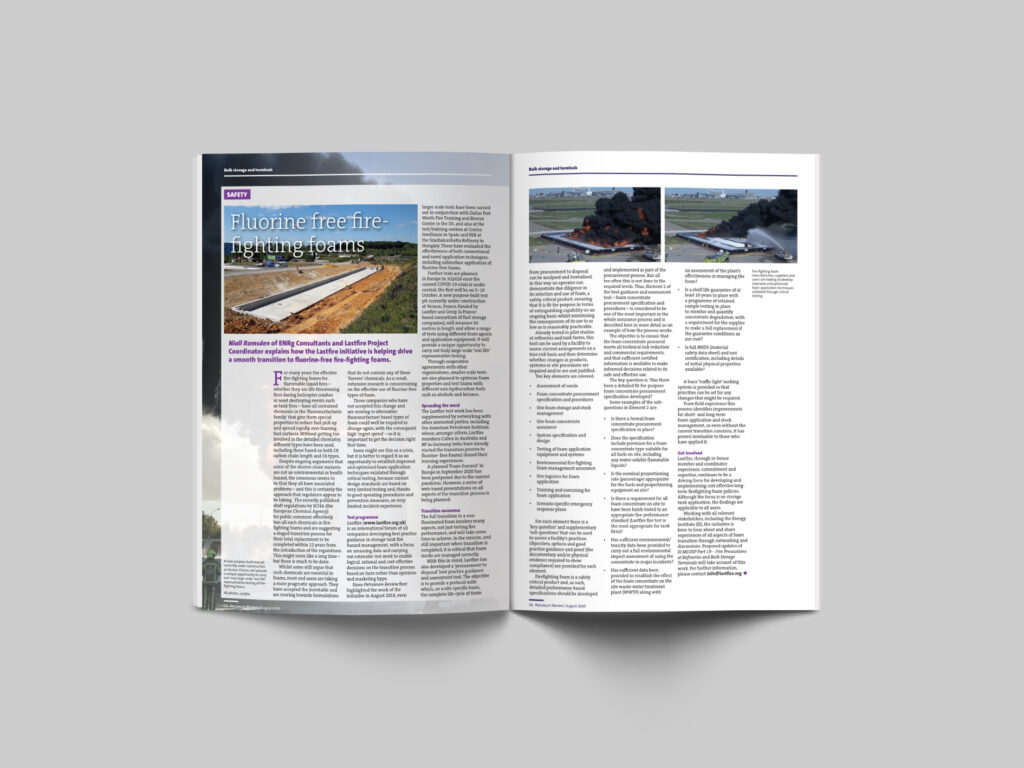Retrouvez l’interview de Lastfire, partenaire des formations Gesip, dans le Petroleum Review d’Août 2020 ! Niall Ramsden de ENRg Consultants et coordinateur du projet Lastfire explique comment l’initiative Lastfire contribue à une transition en douceur vers des mousses anti-incendie sans fluor. Découvrir l’article : > Cliquez ici <