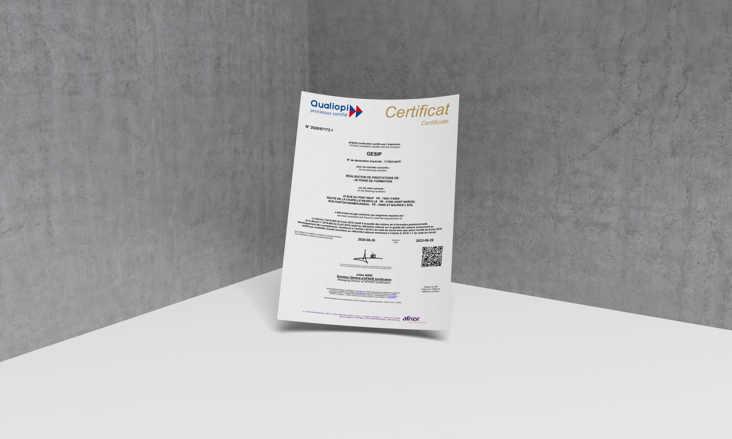 Gesip a obtenu la CERTIFICATION QUALIOPI